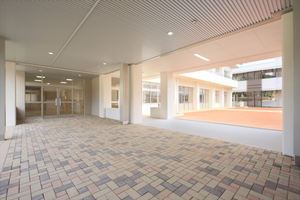 長陽校区統合小学校 教育施設 Year : 2011 Data 所在地 阿蘇郡南阿蘇村 発注者 南阿蘇村 構造 増築S、改修RC 規模 増築2F 990㎡、改修2F 1833㎡ Comment 本建物は、南阿蘇村長陽校区にある3つの小学校(長陽、立野、長陽西)の統合を目的とした建物である。統合した小学校はその立地を長陽小学校とし、既存校舎を再利用する上で児童数の増加に伴った増築を行った。廊下を主幹とし分岐化された形態の既存校舎を増築によって回廊形式とすることで、児童らの動線を円滑で流動的なものとした。